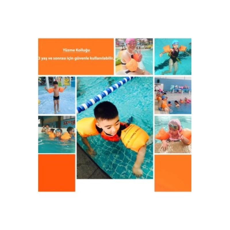 ŞİŞME YÜZME KOLLUĞU Her yaşa uygun kolay şişirilebilir yüzme kolluğudur. Ürün yapısı ve tasarımından kaynaklı olarak her yaşa kolaylıkla olmaktadır. Ürün şişirildikten sonra elinizi içine girecek şekilde ürünü kolunuzda çevirerek yukarı doğru kolaylıkla döndürebilirsiniz. Oldukça kaliteli olan PVC malzeme güvenle kullanımınızı sağlar. Kolu saran ilk Hava yastığı kısmını saran destek olan 2. hava yastığı sayesinde kolluk çevresi sarılarak Ürün daha güvenli olarak tasarlanmıştır.3 Farklı Renk seçeneği mevcuttur.TuruncuMaviPembePaket İçeriği1 adet şişme yüzme kolluğu