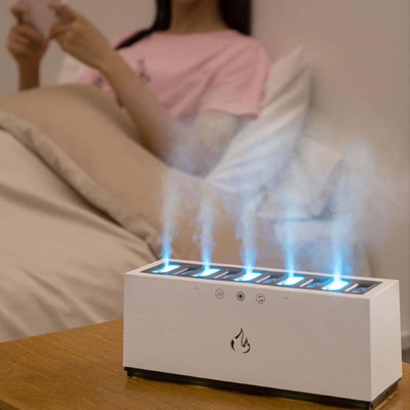 Dinamik tasarımıyla öne çıkan hava nemlendirici 900 ml su kapasitesi sayesinde uzun süreli kullanım imkânı sunar. Üzerinde bulunan 6 adet hava çıkışı güçlü buhar desteği sağlayarak bulunduğunuz ortamdaki nem dengesini korur. RGB ışık fonksiyonu sayesinde ortama modern bir görünüm katar ve müzik ile senkronize şekilde değişen ışıklarıyla eşsiz bir ambiyans oluşturur. Aromatik yağlarla da kullanılabilen cihaz hem şık bir dekoratif ürün hem de sağlıklı bir yaşam alanı için pratik bir çözümdür. Sessiz çalışmasıyla gece ve gündüz her ortamda rahatça kullanılabilir.