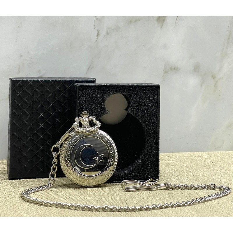 1 adet Özel Kutulu Türk Bayrağı Tasarımlı Gümüş Köstekli Saat
