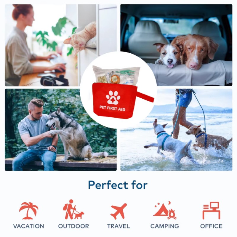 1 adet Evcil Hayvan İlk Yardım Seti Çantası: 1 adet basmalı cımbız1 adet kene cımbızı1 adet gazlı bez rulosu1 adet sargı bandı rulosu1 çift medikal eldiven100 adet kulak temizleme çubuğu1 adet 130x210 acil durum alüminyum ısıtma örtüsü1 adet düdük1 adet makas2 adet alkolsüz temizleme mendili6 adet alkollü temizleme mendili2 adet ilaçlı tampon bez2 tüp göz yıkama sıvısı2 adet gazlı bez1 adet yapışkanlı elastik bandaj