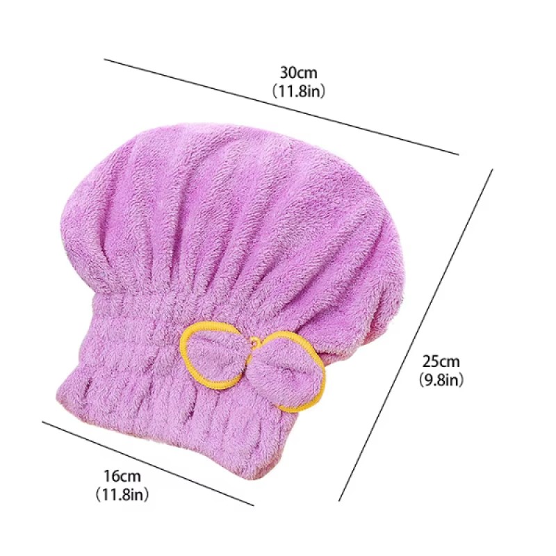 Havlu saç kurutma bonesi, saçları hızlı ve pratik bir şekilde kurutmak isteyenler için özel olarak tasarlanmıştır. Yüksek emiciliğe sahip mikrofiber havlu kumaşı sayesinde saçtaki fazla nemi kısa sürede emer, böylece saç kurutma süresini kısaltır. 30x25x16 cm ölçülerinde olan bone, esnek yapısıyla her baş ölçüsüne rahatlıkla uyum sağlar. Yumuşak dokusu sayesinde saçlara zarar vermez ve elektriklenmeyi önler. Duş sonrası kullanım için idealdir, ayrıca spor salonu, plaj veya seyahatlerde de kolaylıkla kullanılabilir. Üzerindeki şık fiyonk detayı estetik bir görünüm kazandırır. Hızlı kuruyan yapısı sayesinde hijyenik ve uzun ömürlü bir kullanım sunar.