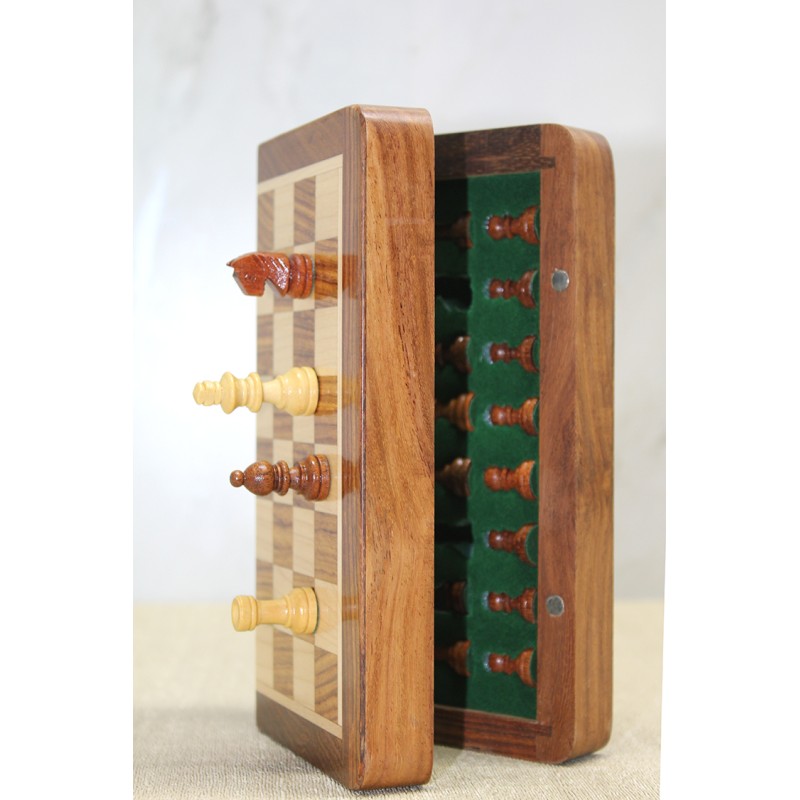 1 adet Özel Vernikli Mıknatıs Taşlı Ahşap Katlanabilir Kutulu Satranç Oyunu 17.5 Cm