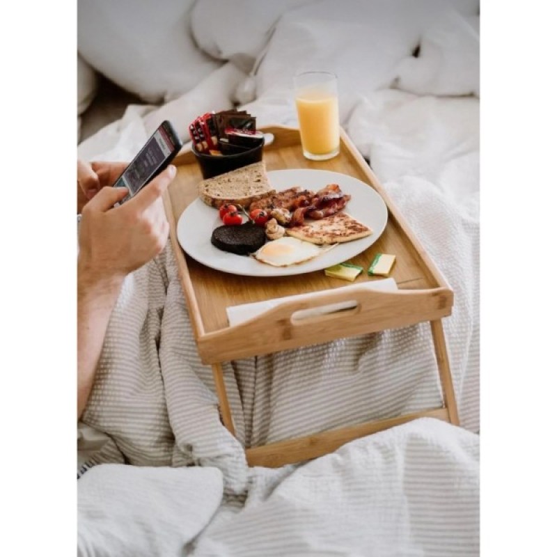 1 adet bambu kulplu ayaklı keyif tepsisi