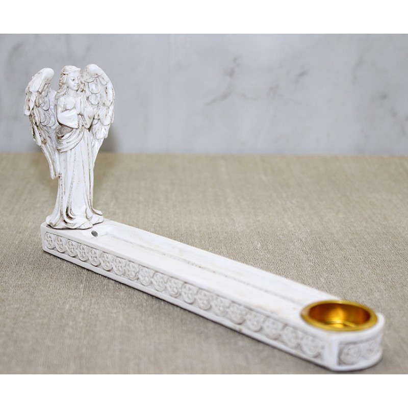 Polyester Melekli Tütsülük, zarif melek figürü ile tasarlanmış şık ve dekoratif bir tütsülük modelidir. 24 cm boyutundaki uzun formu sayesinde tütsü çubuklarını güvenli biçimde taşırken aynı zamanda kullanıldığı ortama estetik bir görünüm kazandırır. Melek figürünün detaylı işçiliği ürüne zarafet katar ve bulunduğu alanda huzurlu bir atmosfer oluşturur. Polyester malzeme yapısı sayesinde dayanıklı, hafif ve uzun ömürlüdür. Hem günlük tütsü kullanımında hem de dekoratif amaçla vitrinlerde, masa üstlerinde ve meditasyon köşelerinde tercih edilebilecek özel bir tasarımdır. Manevi temalı objeleri sevenler veya şık bir hediye arayanlar için ideal bir seçimdir.